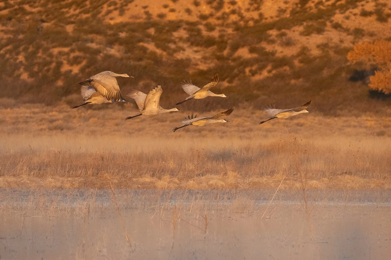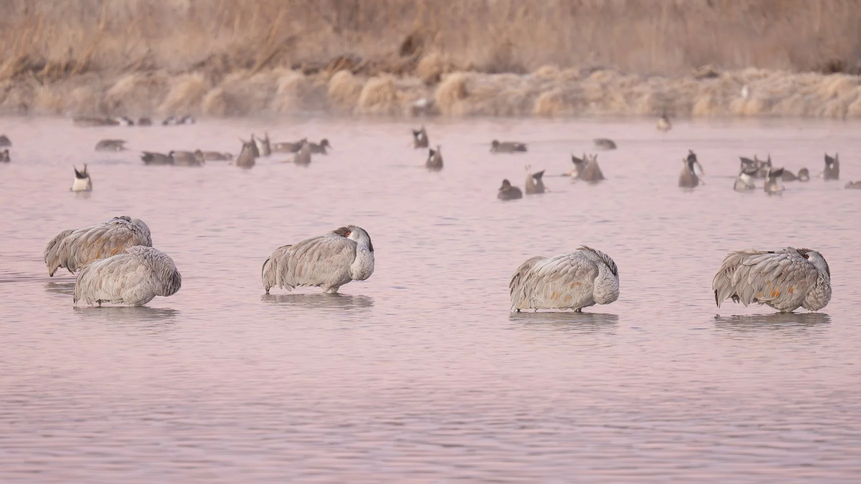 Bosque del Apache is nestled along the valley carved by the Rio Grande River. This time of year, the valley displays a gorgeous array of warm toned grasses, bushes, and trees that provide a great backdrop for the refuge in the middle of the day as well as throughout blue hour. While there are certain times of year when larger flocks arrive and depart for the season, I discovered the refuge is a delight at any time during the winter months.